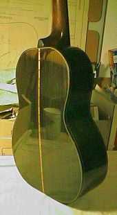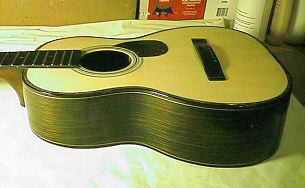 ![]() Here is the finished Size 5. It has a 16" tall soundbox, measures 32" from bottom to top, has a lower bout of 11-1/2" and upper bout of 8-1/2". For such a tiny guitar, it has an amazingly big voice! |