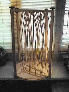 ![]() Here I am gluing the all the top braces to the soundboard, set upon the 25-foot radius arching dish in the go-bar deck. |