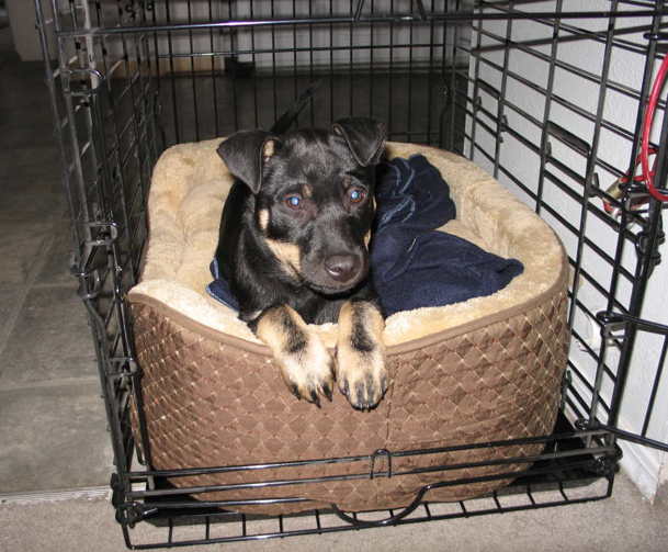Adaptable Hannah: Hannah seems to handle being alone well. I have left her in her crate for an hour or so for short errands, and she doesn't seem to have any problem with it. She seems to like her crate, and, more often than not, falls promptly asleep when she's put into the crate. I have placed the crate upstairs, next to my bed, and I've found she makes trips on her own up the stairs to go to her crate, even without me telling her to. It's her refuge, I guess. She also seems to like going outside in the back on her own, now that she is not afraid of the dog door. I've seen her a few times out there, just lazing in the sun, on the deck or on the lawn. So, it seems, she's quite adaptable; she loves the attention and companionship I give her, yet she also can be okay on her own. At the moment, she seems almost too good to be true!!! A Quick Movie (taken with my digital camera, so not the best quality...):