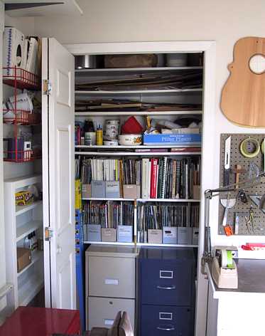 That little white shelf you see on the wall used to be something I had sitting flat on the floor to keep my guitar cases from sliding all over the place. It wasn't actually built to be a shelf. But when I needed room for my new Tormek sharpening station, it became a shelf!!! ![]() |