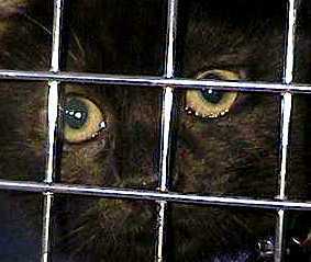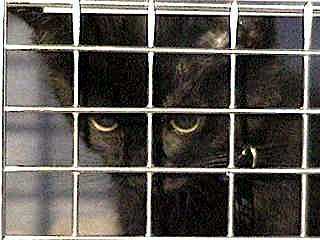 Another new development. . . . . I made another trip to the Humane Society last Saturday and adopted a 2-month-old kitten! I picked her up this past Monday, after she had been spayed. I've named her Maggie. She has her own temporary room right now, the little spare bathroom downstairs, in which I've set up her bed, litter box (covered, so Emily won't get into it), scratch post, food and water dishes, etc. I've been slowly getting Emily and Maggie used to each other, by putting Maggie's crate next to Emily (either in her crate or out free) and letting them sniff and bark and hiss at each other. I've also left Emily in her crate and let Maggie explore the house. I haven't yet let them both out of their crates; I think I'll wait a while before I do that. Emily's been pretty good about it so far. She's excited about her new kitty pal.