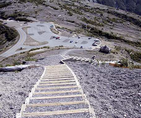 BELOW: These are the zillions of stairs I had to climb to get to the top of the Windy Ridge vista point. See my car there below in the parking lot????