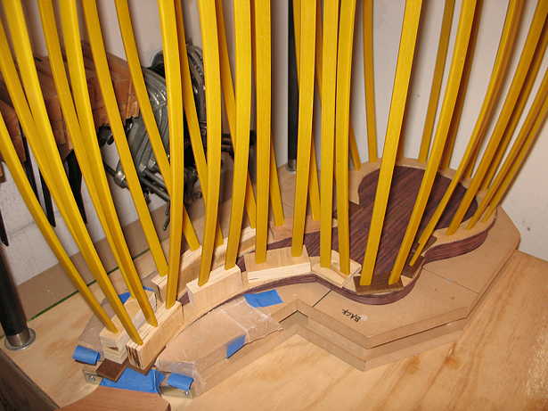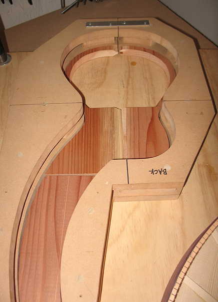 (3) However, as you can see in the two photos below, I did manage to chip out the spruce in a couple of places. Luckily, the chip-out was minimal, and was narrower than the binding ledge I will rout out later.