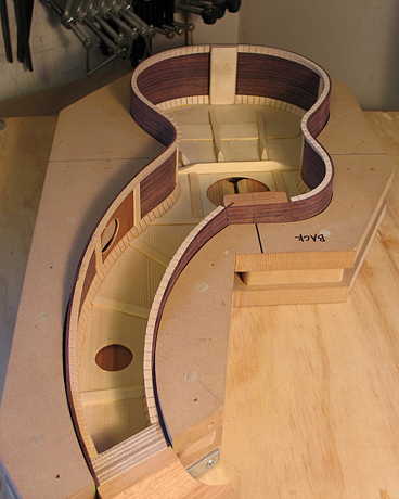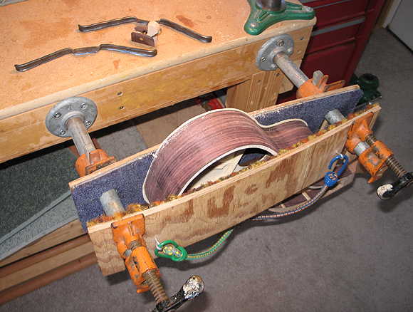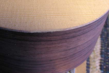 (2) Next, it was time to trim the overhang on the top. I wanted to do this now, so I could see how square the top was to the sides. It turned out to be almost perfectly perpendicular to the sides! To trim the overhang flush to the sides, I used my mini-drawknives and the cute little mini-plane I got from Stephen Boone. As I trimmed the overhang, I was careful to follow the grain.