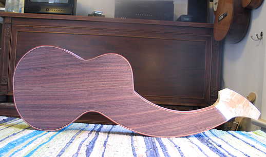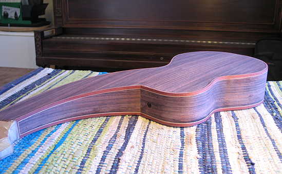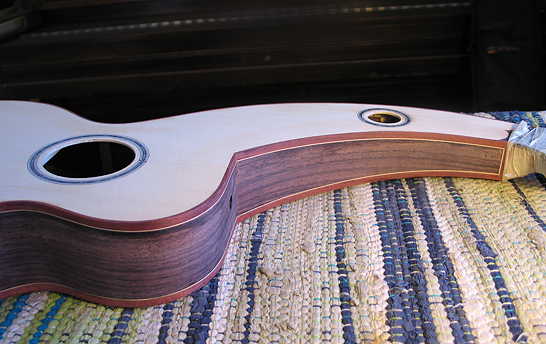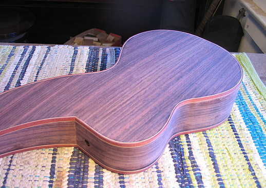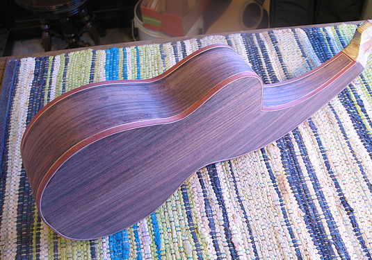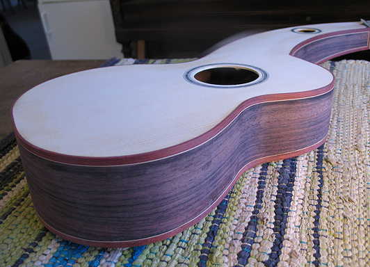 I didn't take any photos yesterday, but I did work on the uke --- I bent and glued all the back bindings. Then, late last night, I removed the tape from the bindings, to let it air-cure overnight.