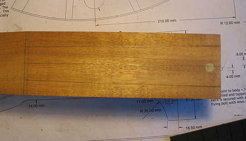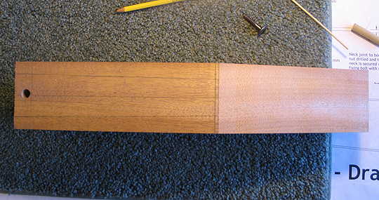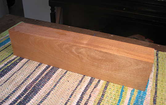 Now it's on to the neck. Below is the mahogany neck blank I will use for the neck. All I have to do is cut and carve away everything that is not a neck. . . .