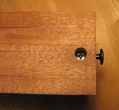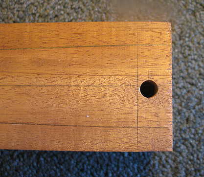 This part took a lot of figuring, because I had to figure out exactly how far from the end of the neck I had to place the barrel nut, based on how far out of the soundbox the bolt would extend. I also had to figure out exactly how deep to drill the barrel nut hole, so it would sit at just the right position to meet the bolt.