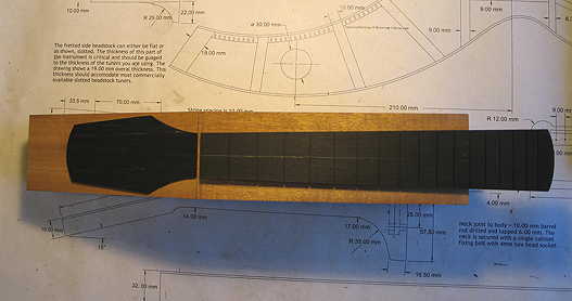 (3) I then traced the fingerboard outline onto the top of the neck blank.