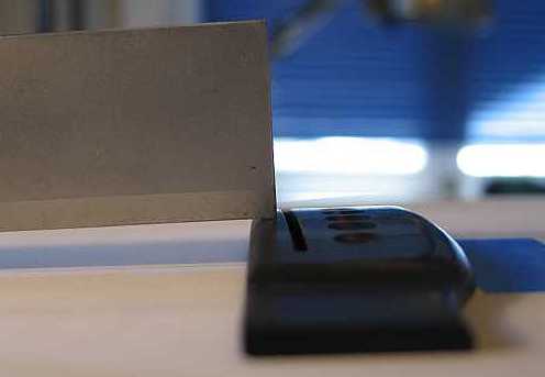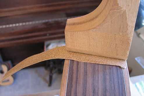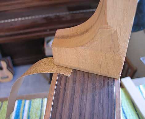 I pressed the heel firmly against the body and slowly pulled the sandpaper strip, until I reached the end of the strip: