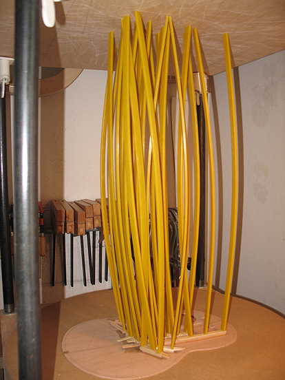 My final task for today was to get a start on gluing on the kerfing strips onto the side set.