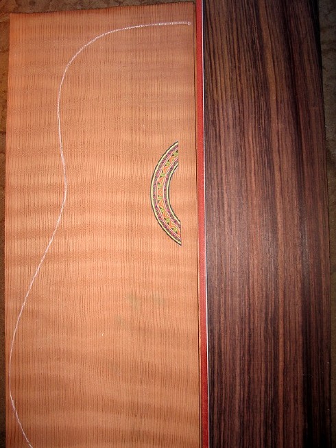 I spent yesterday figuring out how I wanted this classical to look, and last night I went online and ordered materials. I had already gotten some really nice East Indian rosewood for the back and sides, also from RC Tonewoods (what I especially like about ordering from them is that you see exactly, on-screen, the wood set you're going to get --- no surprises!). I also had purchased some lovely bloodwood bindings, which I thought would look nice with the redwood and the rosewood. I ordered most of my other materials from Luthiers Mercantile and some from Stewart-Macdonald. I'm still waiting on the classical guitar plans I ordered (a Torres plan), so I can't even begin making my mold or my side bending form yet! About the only thing I can do at the moment is to join the top and back. Chances are, I won't be able to finish this guitar before school starts up in late August (the building will be interrupted by a 3-day trip up to Santa Rosa for the Healdsburg Guitar Festival August 17th through the 19th), so this is one project that may extend into the fall. . . . |