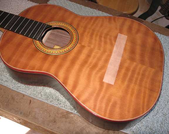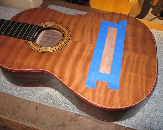 Here I have built up about four layers of masking tape around the bridge-gluing area.