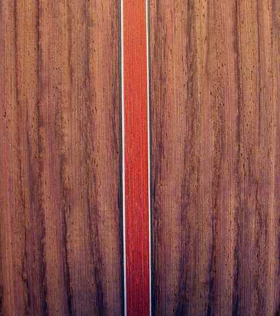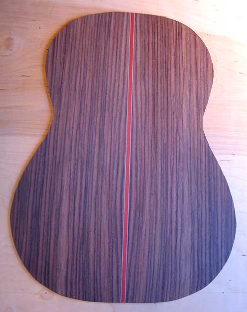 After an hour or so, I scraped and then thickness-sanded the back to about 2.2mm thick. Here's a close-up of the backstrip:
