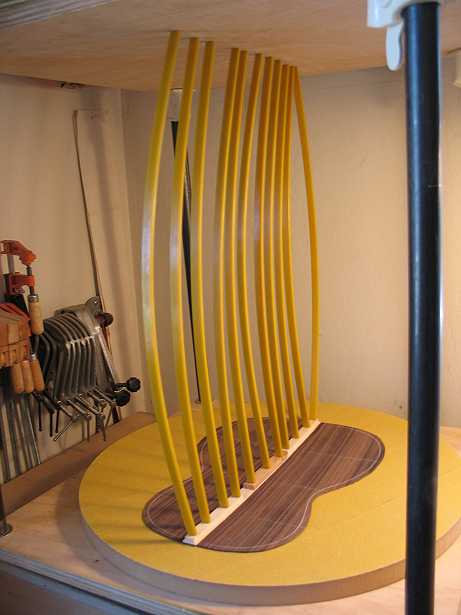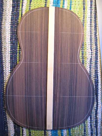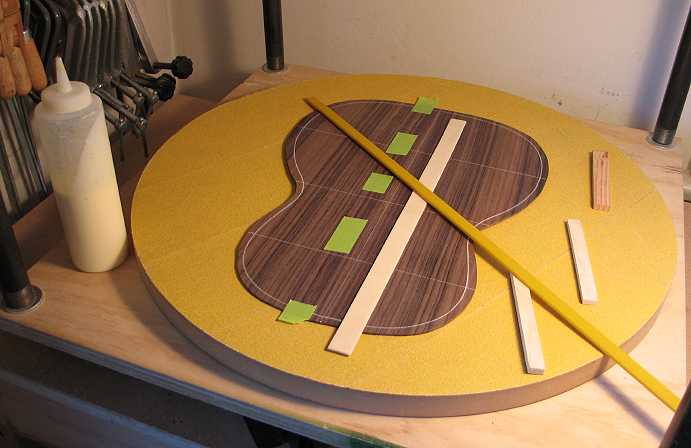 Thus, while I'm waiting for the Zip-Flex strips to arrive (I just ordered them today), I will be working on the back, instead. I will first thickness-sand my back to around .09" or so, then make and glue in the back reinforcement strip. Then I will cut and glue in my back braces. After that, I will carve the back braces. If the Zip-Flex strips still haven't arrived by then, I'll start cutting out the braces for the top.