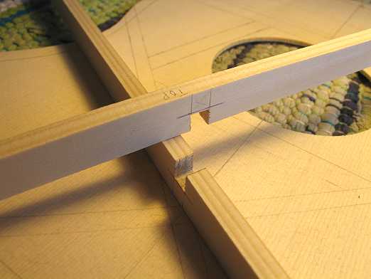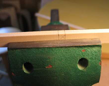 In these two photos, I am marking one of the X-braces on both sides, at the points where it intersects the sides of the other X-brace.