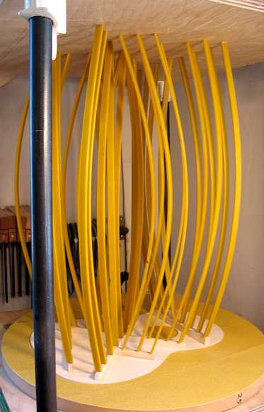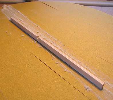 Next, I sand all the braces which need the 25' radius arch on the bottom, using the radius dish covered with sandpaper. I sand arches on all the braces except the upper face brace, the soundhole braces, and the upper transverse graft. These will remain flat.
