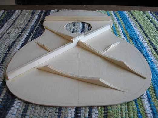Now, after gluing on the bridge plate and soundhole braces, it taps to a B-natural!