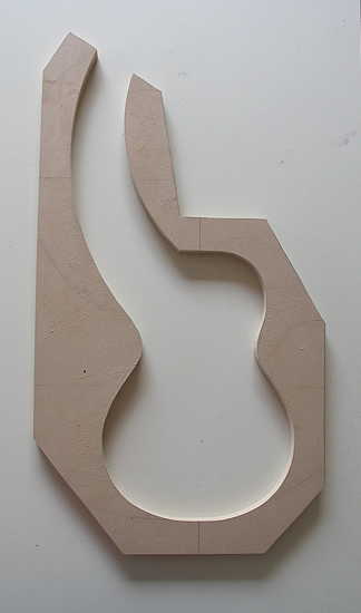 Monday, May 30, 2011: Now that Hannah (my new puppy) is all settled in, I got back to working on the harp ukulele today. I had already drawn the shape of the mold on Friday, using the templates I had made from Pete Howlett's plan: