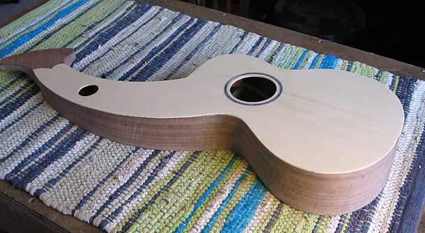 I am loving this little instrument — it's so unique and cute and dainty!!! I can't wait until it's finished, so I can see what it's like to play it!!!! Gotta quit now temporarily — it's time to take Hannah on her afternoon walk! Next up: the end wedge and binding!!!