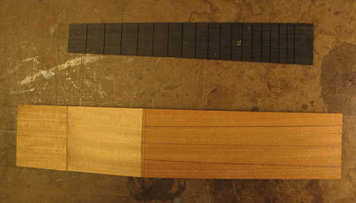 I also tapered the fingerboard and marked out the neck (centerline, nut position, fingerboard position). This ukulele has a 17" scale length.