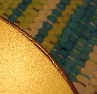 Friday evening: Thought I'd do a little bit of drop-filling tonight. After the finish was sprayed, I noticed a few places where the finish had sunk and there were some gaps between the top binding and the spruce top. I will start the drop-filling process tonight. What I do is drop some waterbase finish into the gaps with a toothpick, in a few sessions. Here's what it looks like before any drop-filling: