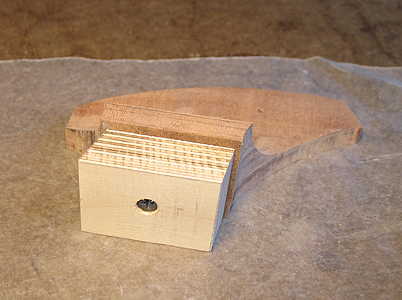 When I was sure that it was right, I glued and screwed the harp peghead block to the peghead: