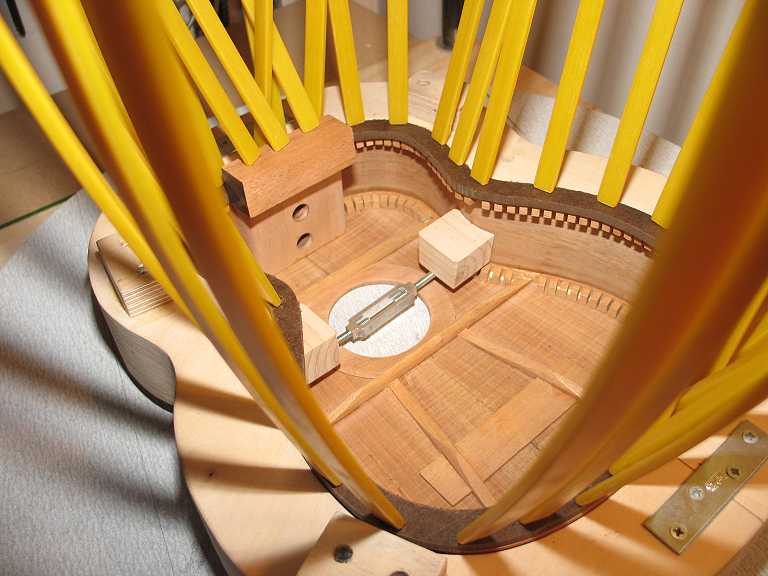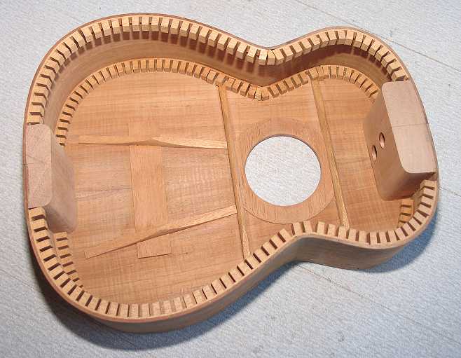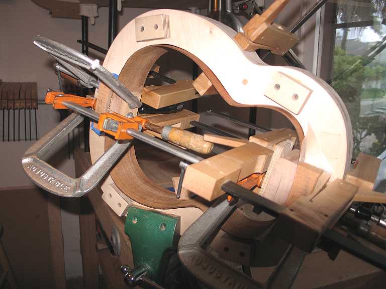 Above --- gluing the neck and tail blocks to the sides.