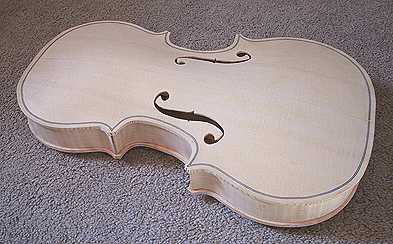 Just a couple of quick photos...I removed the clamps this morning and voilà --- I have a completed violin soundbox!!!! The top was glued on perfectly!!! I think I'll stick with the all-at-once hide-gluing method from now on. The next thing I have to do is totally clean up any glue squeeze-out, then cut out a portion of the top edge for the saddle and cut out the section at the top of the neck mortise, in preparation for fitting the neck joint . After that, I need to bevel and round the edges of the plates. I'm getting excited now.....the end is in sight.... |
