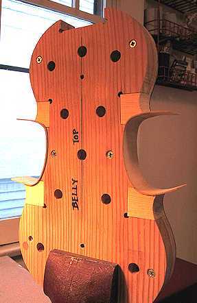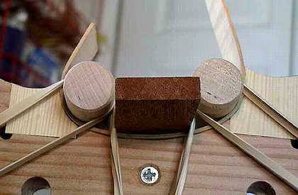 Below, I have glued the C-bout to the corner blocks, after having waxed the edge of the mold between the two corner blocks, to make sure no glue sticks there.