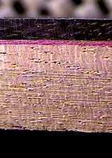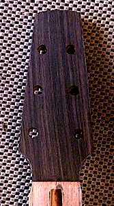 I have glued a thin red veneer sheet in between the rosewood headplate and the mahogany peghead. |