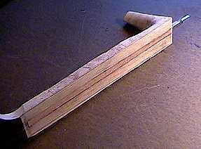 July 25, 1999 . . . . Here I've epoxied in the truss rod (a new Martin-style double-acting truss rod offered by LMI), with filler strips of mahogany epoxied over the truss rod. |