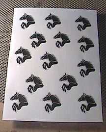 Last summer I had found a clip art book with this design of a horse, so I scanned it and saved a page with about fourteen of them. Then I cut, out of each horse image, only one of the thirteen sections. This way, I was able to place each section over the abalone pieces, until I found a section of abalone that looked suitable for that part of the horse's body. |