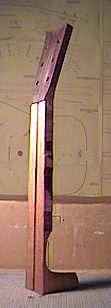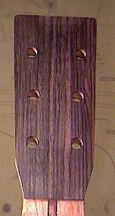 To the left are some views of the peghead, after I have cut and sanded it to its final shape. I have also drilled the holes for the tuners. Next will come the peghead inlay (the horse design I used on the Size 5 I made last summer), the ebony heelcap, and the final shaping of the neckshaft (after the fingerboard is glued on) and the heel .