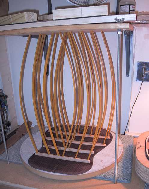 I had on hand. I then traced the 15' radius arch onto the braces, sanded