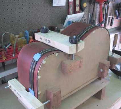 Below, you see the soundbox sitting in my pipe-clamp guitar clamp.