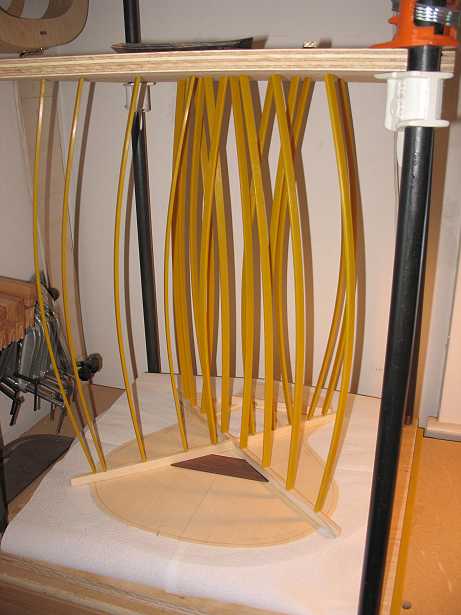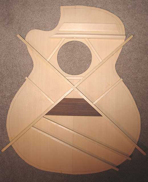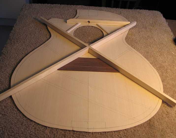Today I finished gluing up all the bracing of the top and the back. Tomorrow, I'll carve the top braces.