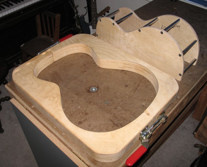To the right are the mold and the side bending form for the Taylor Grand Concert model. I bought these from John Hall, of Bluescreek Guitars. I plan to use his universal side-bender (shown below) for this guitar.