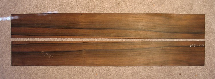 Here are the sides and back I will be using for this guitar. (They aren't jointed yet.) I have never used this wood before. It is Malaysian blackwood, which I got from Jeffrey Yong at the 2004 Guild of American Luthiers convention in Tacoma. Isn't it beautiful?