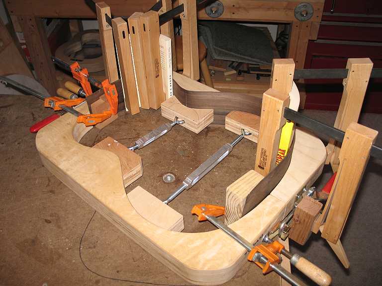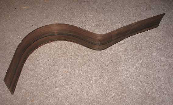 Here is the cutaway side after I bent the waist and lower bout in the bender. Tomorrow I plan to use the electric bender to bend the cutaway portion of this side. While I'm at it, I will also touch up various sections of the two sides by hand.