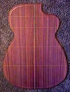To the right is the back, after I have drawn the guitar outline, figured out and drawn in the brace locations, and cut about 1/2" outside of the outline. |