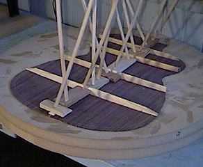 The fully-braced back. I have scalloped the ends of the four braces and sanded everything.
