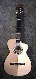| Well, here's the part that I thought would be the hardest part.....making the classical bridge from scratch. I had no choice but to make one from scratch, as my weird classical is of a unique, weird size. However, when I actually set down to making the bridge, it wasn't as difficult as I had imagined it would be. It took me only a day. And it was fun! I pretty much followed Cumpiano's instructions on this part. |