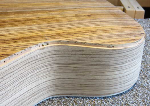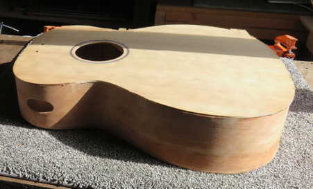 Tonight Randall trimmed the top and back overhang close to the sides. Since we had no electricity, we couldn't complete the job by using the router jig to rout it all the way flush to the sides, so that will have to wait till next Sunday.