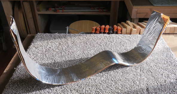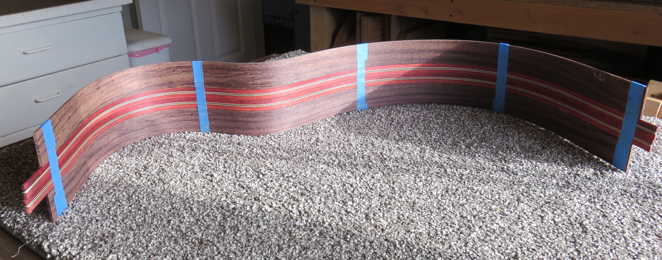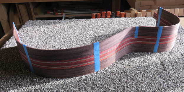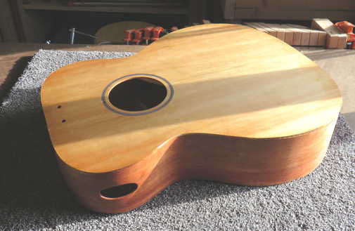 BELOW: After routing the overhang flush, Randall has coated the surfaces with shellac, to help minimize tear-out when later routing the channels for the binding.