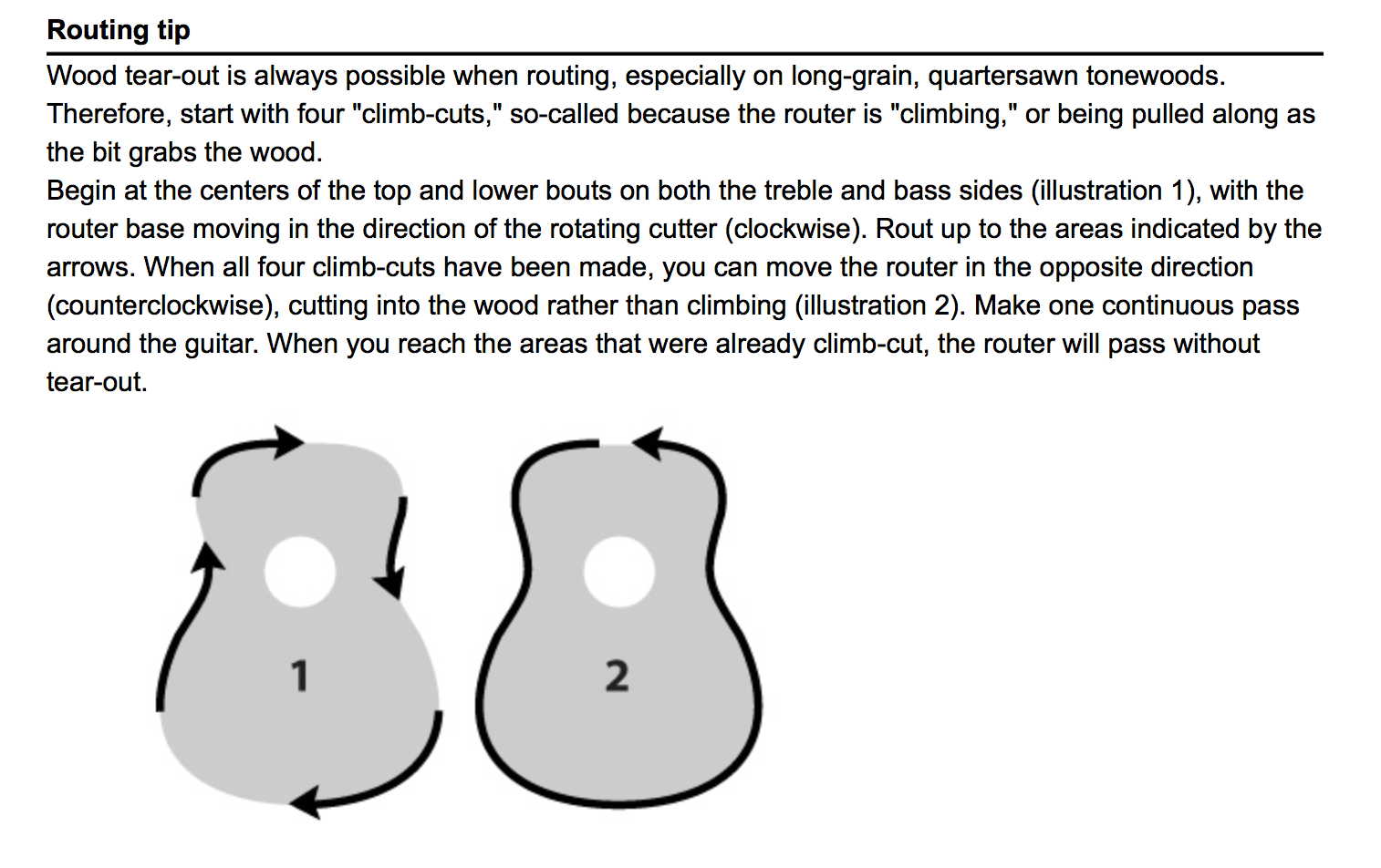 TO THE RIGHT: Here is a helpful tip from the Stew-Mac website, about the direction in which to do the routing.