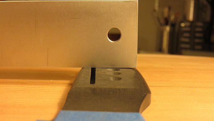 After finally getting the back angle correct, we only had to remove a little from the treble side of the heel, to correct the side-to-side angle. We did this by putting some stick-on sandpaper on that side of the mortise and moving the heel back-and-forth over that sandpaper until the side-to-side angle was correct.