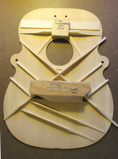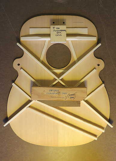 I did have to, however, make a new caul for the fingerboard extension area, but that was pretty easy, compared to making a bridge clamping caul.