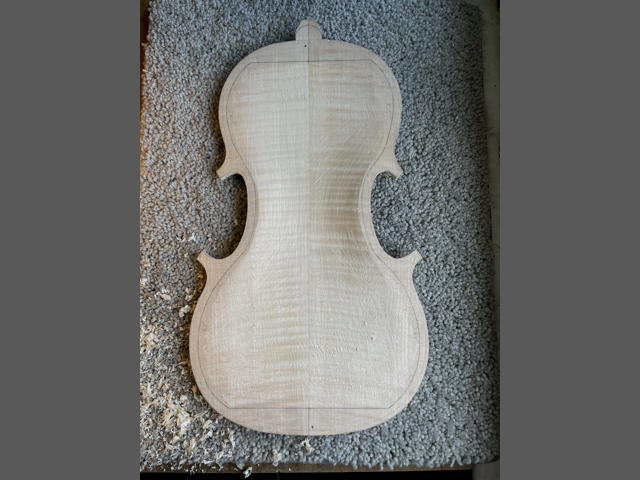 Now I'm going to raise the grain one more time, and, when that's dry, sand and scrape it one last time. The hardest part to get really smooth is the area right before the sguscia, as sometimes it's difficult for the scrapers to fully reach that area. (But I think sanding will help in that problem.)