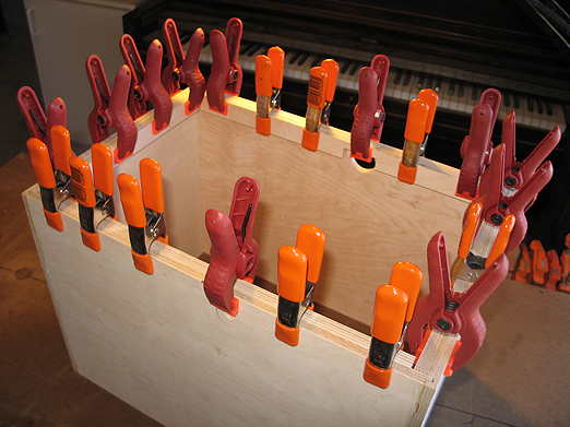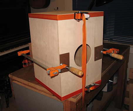 This morning I first glued the sides to the base and top piece. (Forgot to take a photo of this!) Using two Pony web band clamps, with their aluminum corner supports, helped keep it all square. Here's a photo of the product from the web: