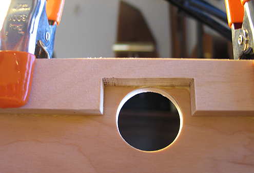 ABOVE: Here's a close-up of the little cut-out I made in the side battens, to accommodate my snare-adjustment modifications.